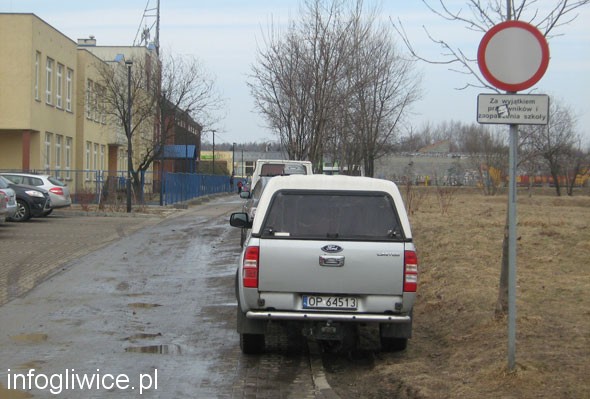 Dla nauczycieli jest parking, i wjazd na ten parking jest dla nich dozwolony. Zresztą i tak nic to nie daje bo ludzie zrobili sobie z tego parking osiedlowy, a przyjeżdżając do pracy nie masz gdzie zaparkować