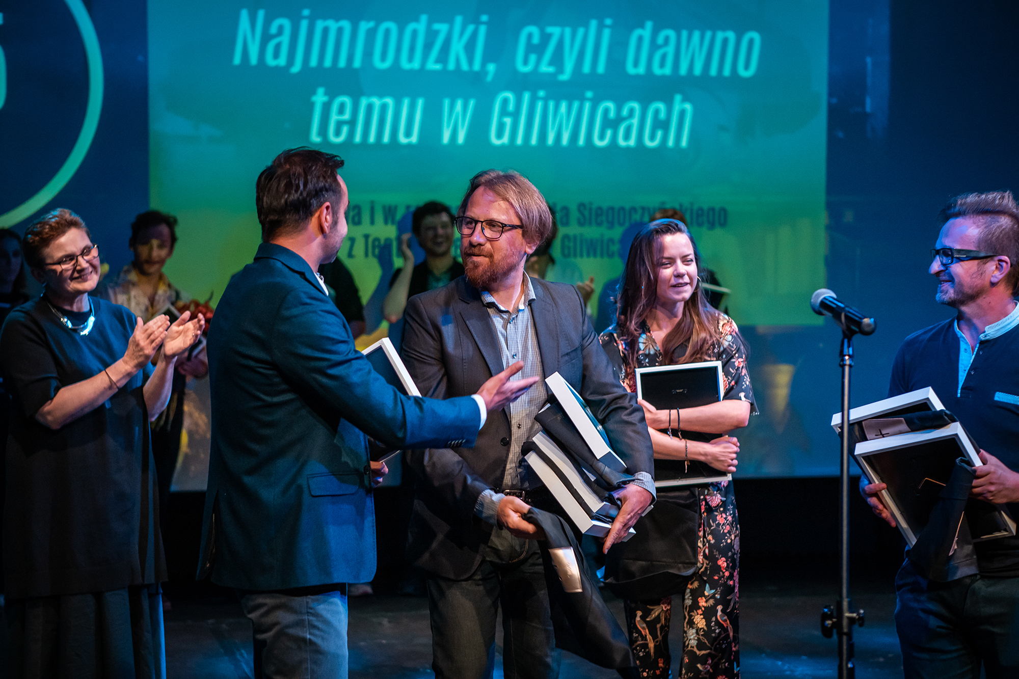 – Rozbiliśmy bank. Spadł na nasz spektakl, na nasz teatr, deszcz nagród, a czegoś takiego nie było w dotychczasowej historii teatrów w Gliwicach – tych przedwojennych jak i tych powojennych – powiedział tuż po zakończeniu konkursowej gali, Grzegorz Krawczyk, dyrektor Teatru Miejskiego w Gliwicach. – W zaledwie trzy lata, na gliwickiej scenie, najmłodszego teatru w kraju, powstało przedstawienie uznanie za najlepsze w kraju, za rewelacyjne pod każdym względem, kochane przez widzów i krytyków. O czymś takim można tylko marzyć. Ale myśmy z Łukaszem Czujem, moim zastępcą do spraw artystycznych, nie tylko o tym zamarzyli, ale i zrobili. W jednej z naszych rozmów, zaraz na początku kreowania Teatru Miejskiego w Gliwicach, powiedzieliśmy sobie, że interesuje nas utworzenie najlepszego teatru w Polsce. No i dzisiaj go mamy. Bo tylko w bardzo dobrym teatrze, takim który stwarza twórcom doskonałe warunki pracy i ich inspiruje możne powstać znakomity spektakl. Dedykuję ten sukces Miastu Gliwice, które cztery lata temu odważyło się zaryzykować i zgodzić na totalne przeobrażenie tutejszej sceny teatralnej. A jako polonista dziękuję szczególnie Michałowi Siegoczyńskiemu, za wyśmienity tekst (który już niedługo będzie wydany w formie książkowej w serii Czytelnia Sztuki) oparty o naszą lokalną historię, o losy „bohatera z naszej dzielni”, dziękuję mu za pełną werwy i wyczucia iście hollywoodzką reżyserię, dziękuję za popisowe role zespołowi aktorskiemu oraz całemu naszemu teatrowi – możecie być dumni ze swojej pracy, gdyż dziś oklaskuje Was cała teatralna Polska – dodaje Grzegorz Krawczyk.