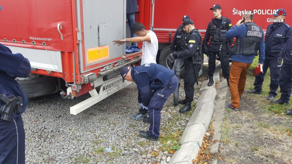 Nielegalni imigranci w Gliwicach. Ukryli się w naczepie tira jadącego z Bałkanów