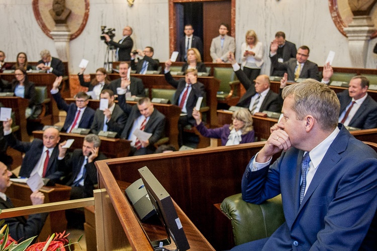 W ławach Sali Sejmu Śląskiego zasiadło 45 radnych. Wybrano przewodniczącego sejmiku.
