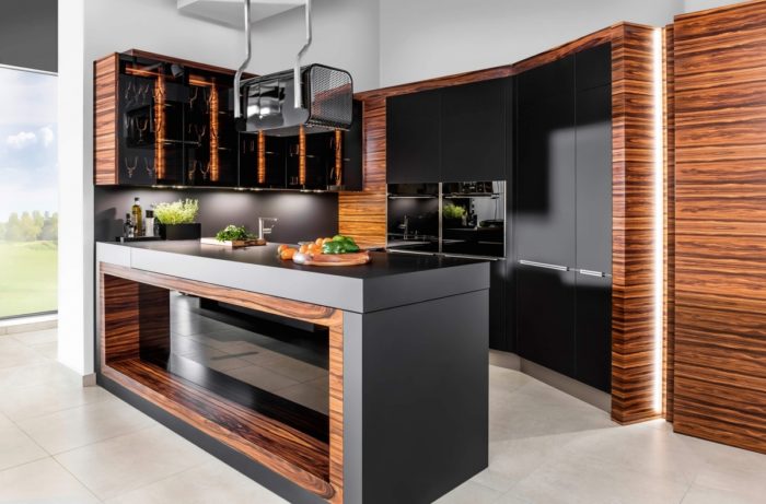 Jeżeli jesteś miłośnikiem raczej awangardowej i wyrazistej aranżacji to Twoje serce podbije kuchnia Halupczok TOSCANA. Meble w ciemnej kolorystyce nadadzą wnętrzu tajemniczości, a Tobie inspiracji do coraz odważniejszych, kulinarnych pomysłów. Czarne meble kuchenne świetnie będą pasować do modernistycznych przestrzeni, a także eleganckich, męskich mieszkań. Kolorystyka tej kuchni jest na pewno unikatowa, egzotyczny fornir wygląda ciekawie, ale też przytulnie. Podświetlane witryny dodają mu uroku i ułatwiają użytkowanie.