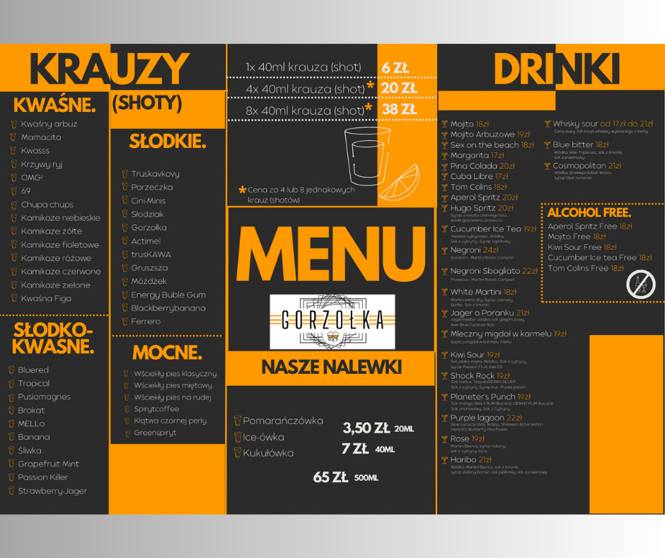 Przyjdź do nas już dzisiaj i przeżyj niezapomniane chwile w „Gorzołce” – miejscu, gdzie doskonałe napoje, atmosfera i rozrywka spotykają się w jednym.