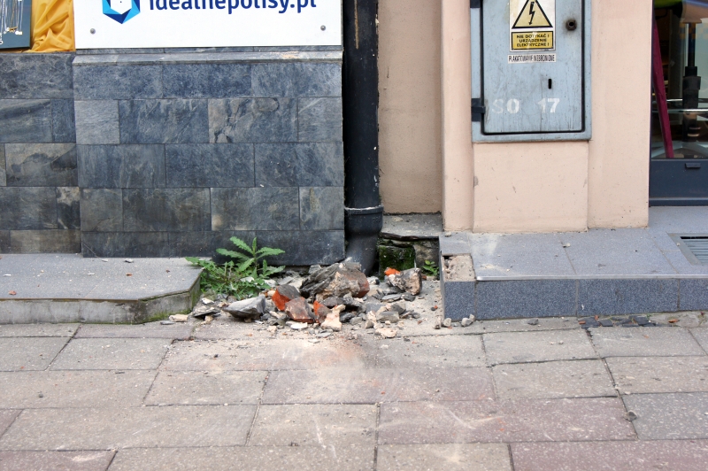 O włos od tragedii. Gzyms spadł na chodnik przy ul. Zwycięstwa