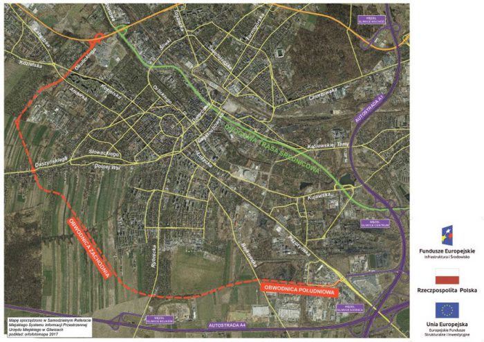 Docelowo cała południowa obwodnica Gliwic ma przebiegać na długości około 4 km.
