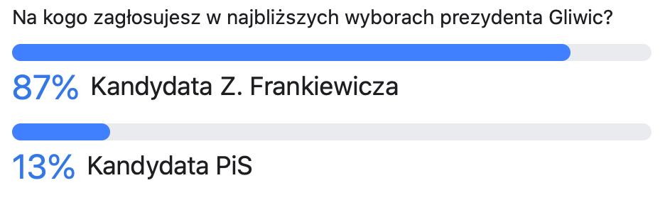 Jak wynika z sondażu przeprowadzonego na naszym Facebooku – 87% z 1800 głosujących zamierza oddać głos w wyborach na kandydata wskazanego przez Frankiewicza.