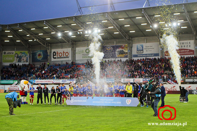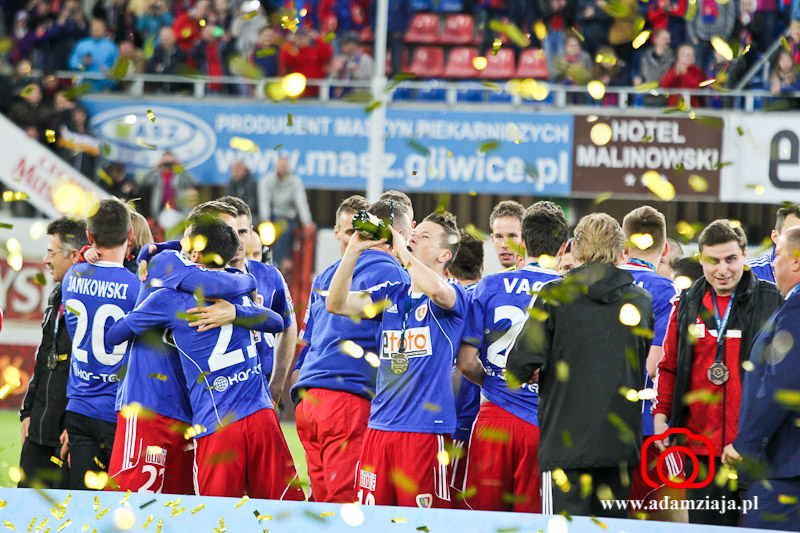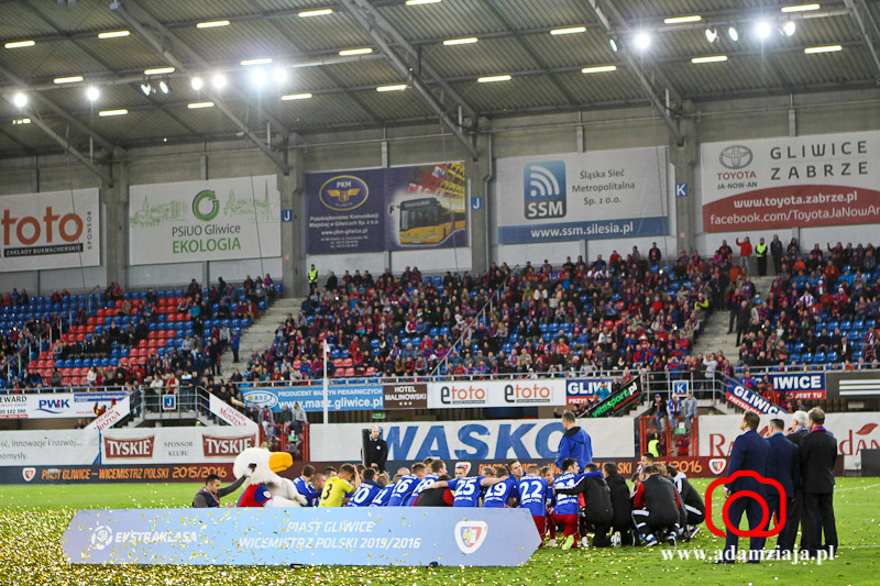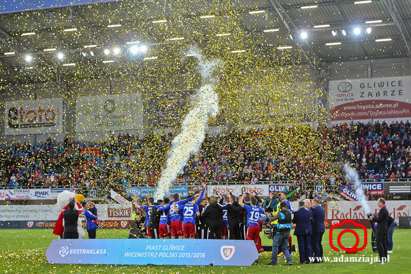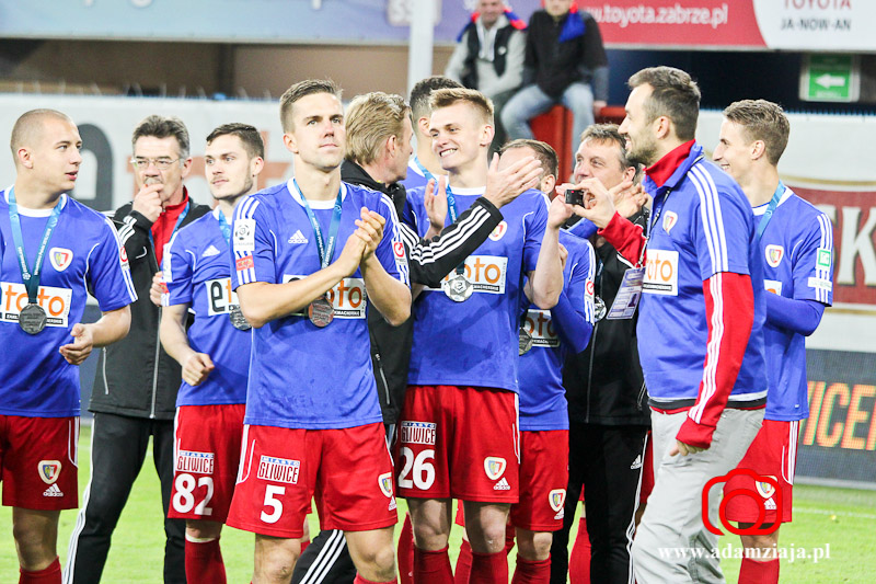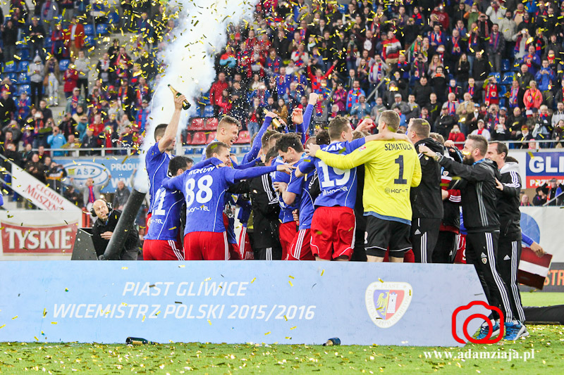 Piast Gliwice zdobył tytuł wicemistrza Polski. Zobacz zdjęcia z meczu i fety na stadionie oraz Rynku.