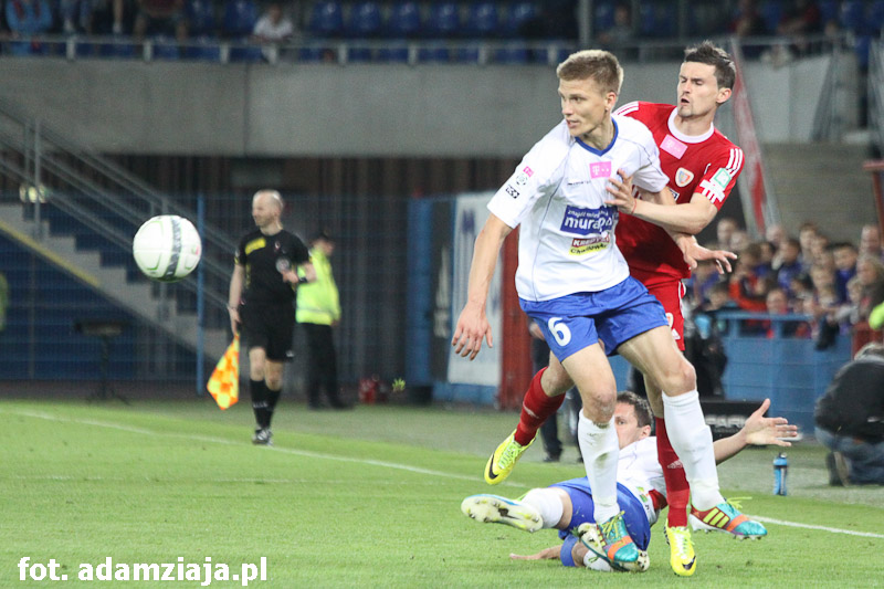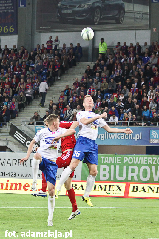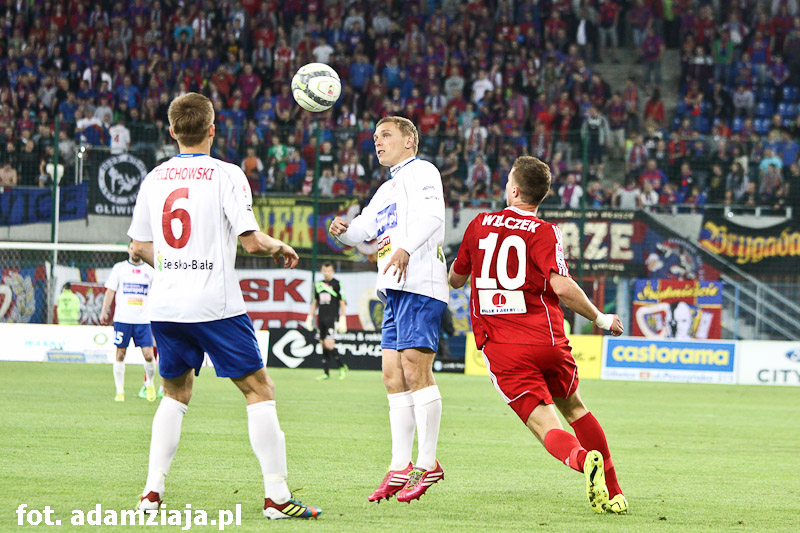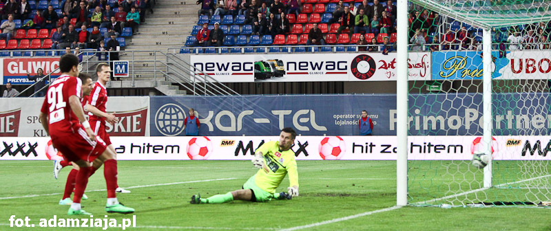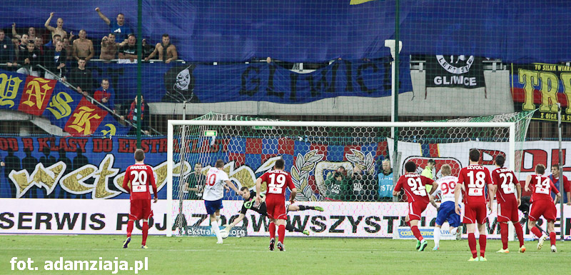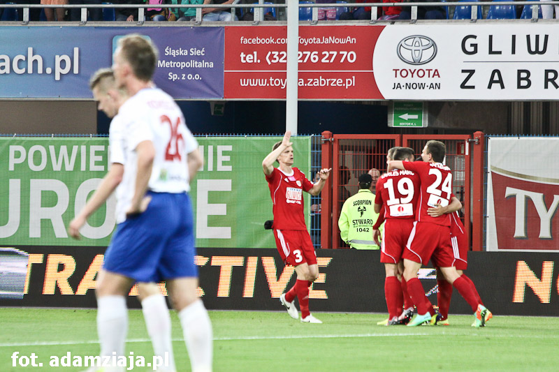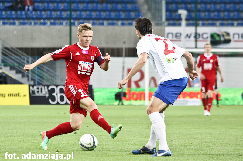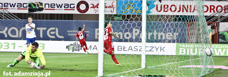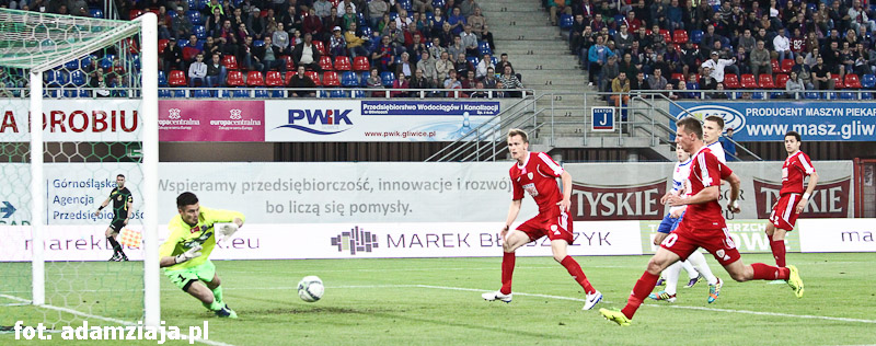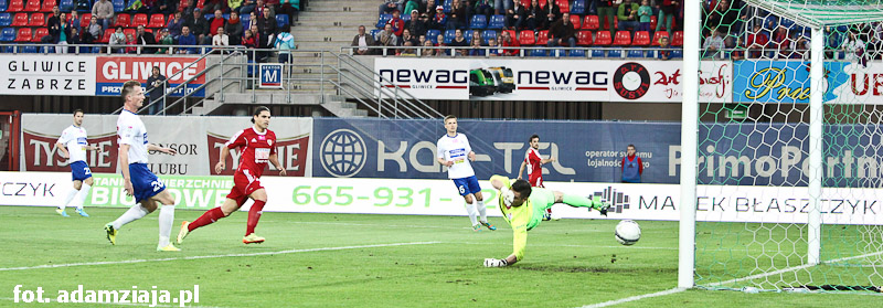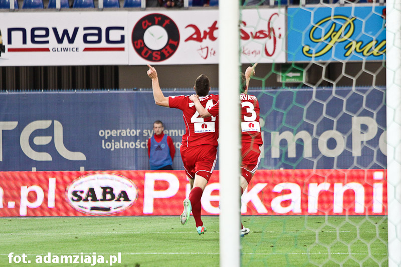 Pierwsza połowa w pełni należała do gliwiczan. Od początku spotkania podopieczni Angela Pereza Garcii atakowali gości, co przyniosło efekt już w siódmej minucie, kiedy trafienie na 1-0 zaliczył Wojciech Kędziora.