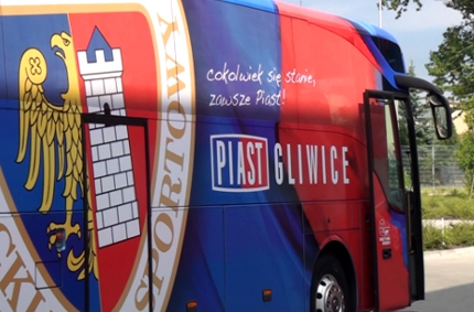 Od 13 sierpnia piłkarze Piasta Gliwice, wyjeżdżając na mecze, zgrupowania i inne klubowe wydarzenia, będą korzystać z niebiesko-czerwonego autokaru. – Nowy oklejony naszymi emblematami autokar jest nowym środkiem przekazu, przeznaczonym na potrzeby klubu. Piłkarze będą jeździć na mecze wyjazdowe, zgrupowania w bardzo komfortowych warunkach – mówi Jarosław Kołodziejczyk, prezes Piasta.