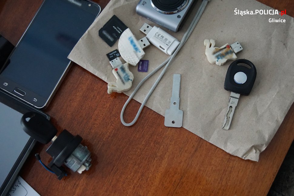 Policjanci z Wydziału do Walki z Przestępczością Przeciwko Mieniu Komendy Miejskiej Policji w Gliwicach prowadząc pracę operacyjną, rozpracowali, wytropili i zatrzymali kolejnych podejrzanych o kradzieże samochodów. Okazali się nimi 31-letni gliwiczanin i jego 40-letni wspólnik z Bytomia. Mężczyźni zostali zatrzymani w swoich mieszkaniach, nie spodziewali się wizyty policjantów. Zabezpieczono przy nich szereg przedmiotów służących do pokonywania fabrycznych (elektronicznych i mechanicznych) zabezpieczeń. Podejrzani są m.in. o dokonywanie kradzieży aut z naszego rejonu. Czeka ich proces karny i wyroki. Z uwagi, że sprawa ma charakter rozwojowy, nie możemy szerzej informować o wynikach policyjnego śledztwa. Za kradzieże kodeks karny przewiduje karę do 5 lat więzienia.