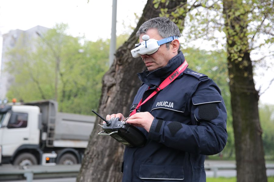 W odległości kilkuset metrów od miejsca objętego nadzorem patrol policji wyposażony w laptopa, dzięki któremu mundurowi online widzą obraz z kamery umieszczonej na dronie zatrzymuje kierujących pojazdami, którzy kilka sekund wcześniej nie stosowali się do przepisów kodeksu drogowego. Ponadto w rejonie obserwowanych przez drona pasów” kolejny patrol kontroluje osoby piesze, które w sposób nieprawidłowy przekroczyły jezdnię.