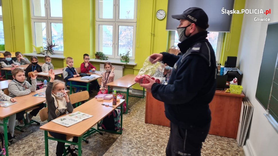 Gliwiccy policjanci spotkali się z młodymi gliwiczanami przed szkołami, w niektórych podstawówkach wzięli udział w rozpoczęciu lekcji i omówili tematy bezpiecznej drogi do i ze szkoły, zasady bezpiecznej zabawy na śniegu, przypominali o zakazie wchodzenia na zamarznięte zbiorniki wodne. Przy okazji spotkań dzieci otrzymały odblaskowe opaski, a rodzice – skrobaczki do szyb.