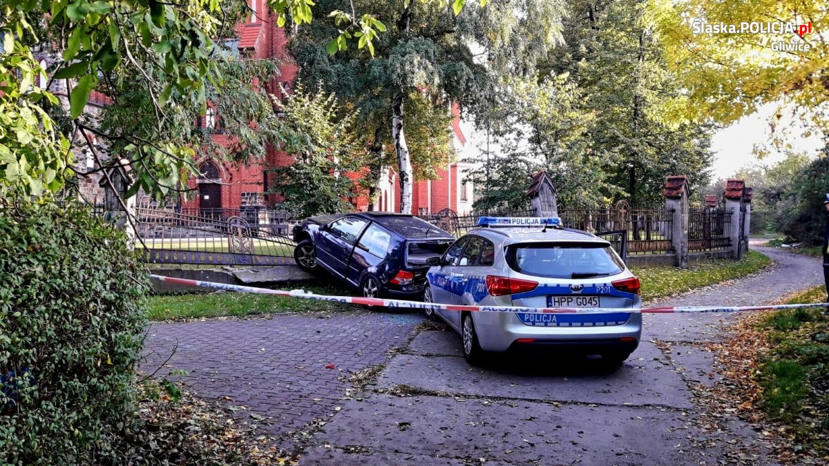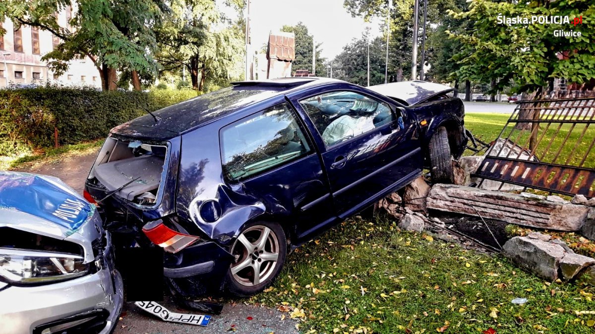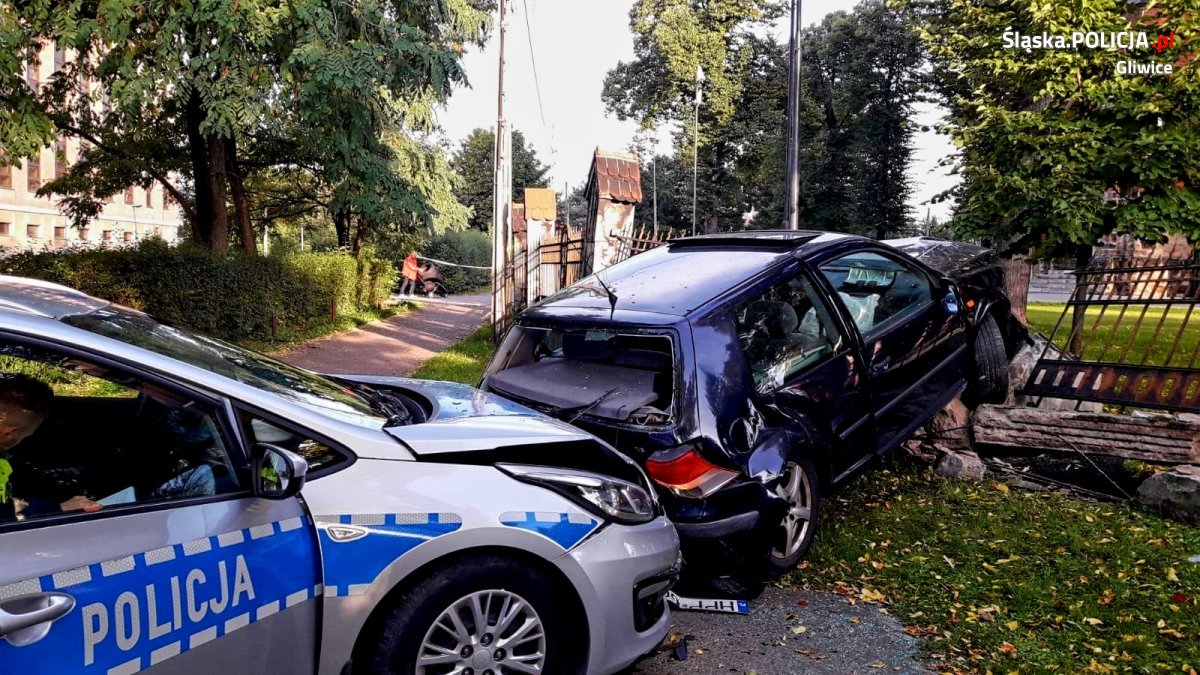 W niedzielny poranek na płocie okalającym plac kościoła przy ulicy Bernardyńskiej zakończyła się ucieczka gliwiczanina przed ścigającym go policyjnym radiowozem.
