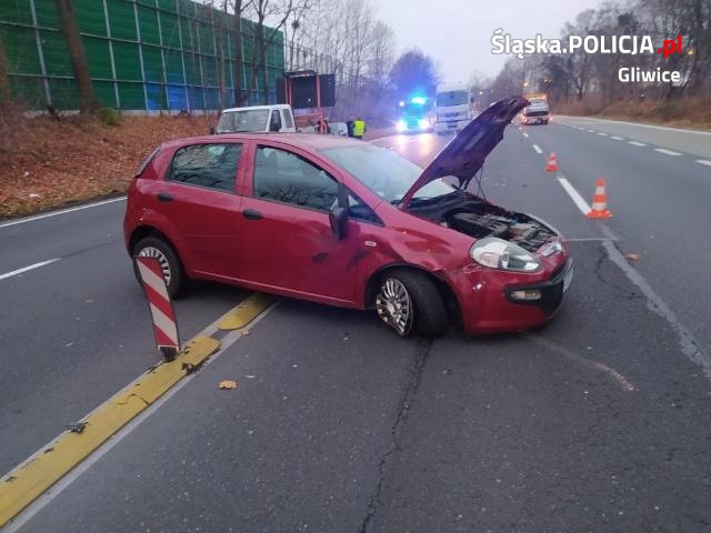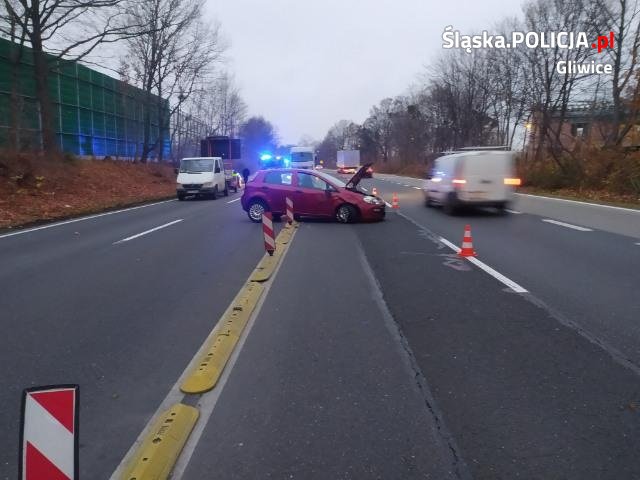 O godzinie 15.15 na prostym odcinku drogi zderzyły się tam cztery samochody, którymi podróżowało w sumie pięć osób. Gliwiczanin kierujący hyundaiem, jadąc w stronę Zabrza, podczas zmiany pasa ruchu z prawego na lewy zajechał drogę zabrzance kierującej fiatem. Doszło do zderzenia. Fiat punto przejechał na przeciwległy pas, zderzając się z peugeotem, z kolei francuskie auto przemieściło się i zderzyło się z nadjeżdżającym volkswagenem.