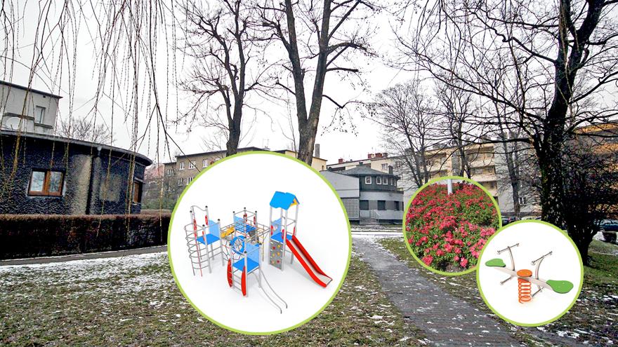 Stare chodniki na skwerze zostaną zlikwidowane. Ich miejsce zajmą nowe ścieżki z betonowej, szarej i grafitowej kostki. Przewidziano też poidełko dla ptaków, a przy alejkach stylowe, żeliwne retro ławki i kosz na śmieci.