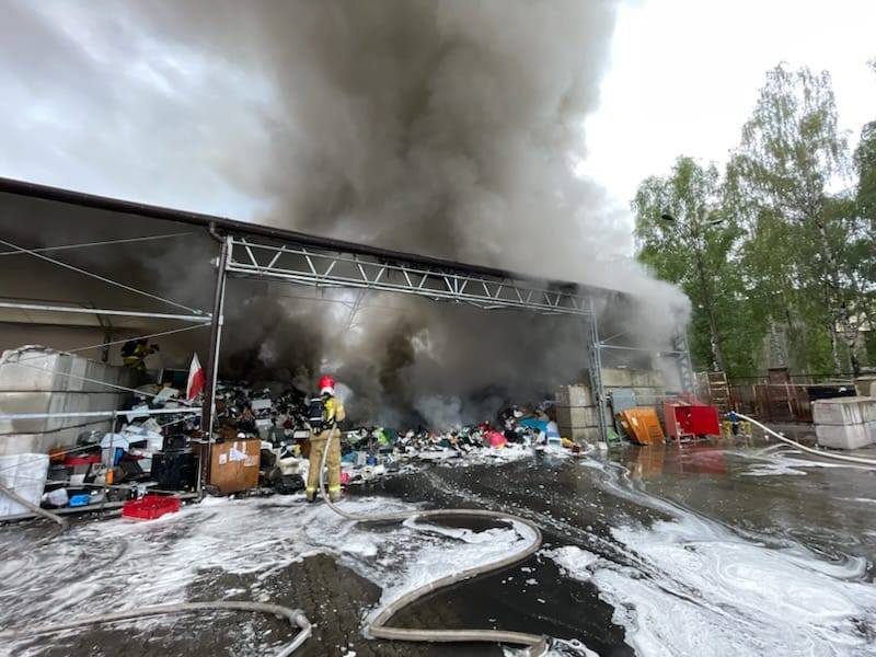 9 lipca, doszło do pożaru hali magazynowej z elektrośmieciami przy ul. Mechaników w Gliwicach. Na miejscu działa już 14 zastępów straży pożarnej – łącznie 34 strażaków.