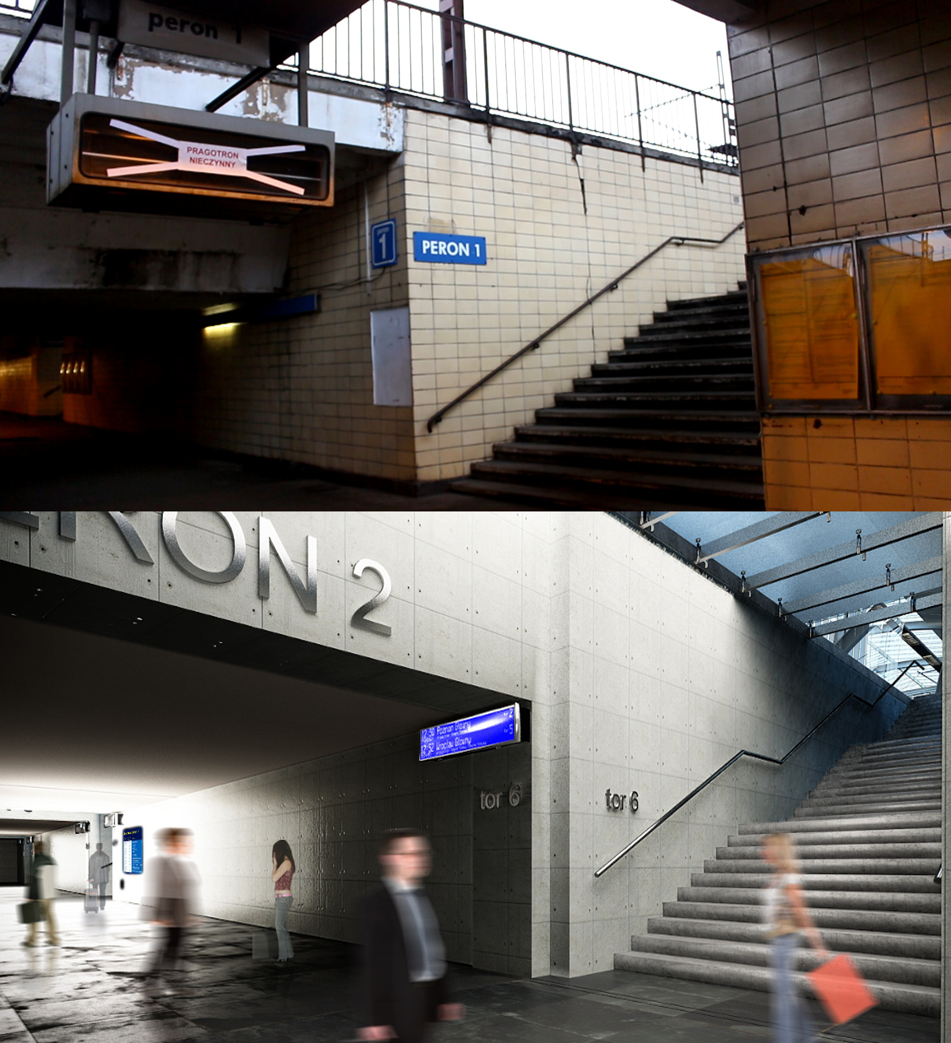 Gruntowna przebudowa czeka perony i tunele. Z tunelu na poziom peronu będą prowadziły schody ruchome (tunel główny) i windy (z tunelu od holu autobusowego). Perony zyskają całkowicie nową nawierzchnię oraz zadaszenie z przeszkleniami.