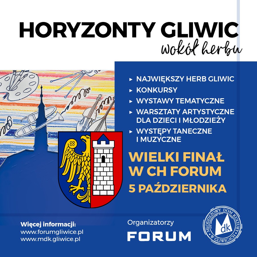 Pokaz zbroi rycerskich, konkursy i warsztaty, występy artystyczne, a przede wszystkim trzymetrowy herb miasta. To tylko niektóre z atrakcji przygotowanych na sobotni (5 października) finał akcji Horyzonty Gliwic – wspólnego projektu Młodzieżowego Domu Kultury w Gliwicach i CH FORUM.