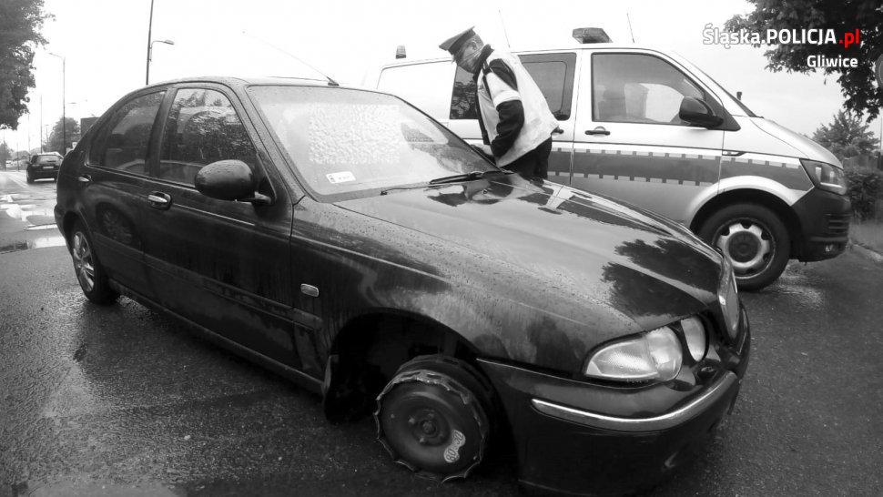 Na miejsce skierowano dwa najbliższe patrole drogówki. Dzięki ciągłej komunikacji ze zgłaszającym policjanci szybko namierzyli pojazd i zatrzymali jego kierowcę. Okazało się, że 34-letni mieszkaniec powiatu rybnickiego, będąc kompletnie pijanym, uszkodził oponę, która spadła z obręczy. Mężczyzna „zawzięcie” zmierzał do domu. Jego podróż na trzech kołach, dzięki współdziałaniu stróżów prawa i praworządnego kierowcy, zakończyła się bezpiecznie dla wszystkich uczestników ruchu.