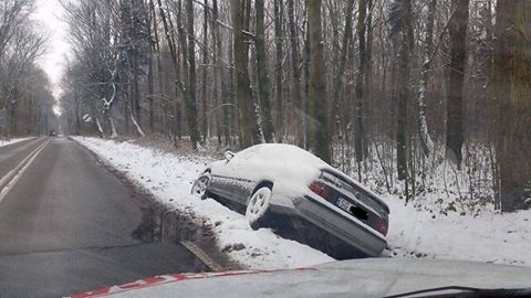 We wtorek zdjęcie dostaliśmy od Pawła. Na początku myśleliśmy, że ktoś wpadł w poślizg po opadach śniegu. Szybko okazało się, że auto znajduje się w rowie od kilku dni. – Widziałem to auto już w sobotę – napisał Kamil.