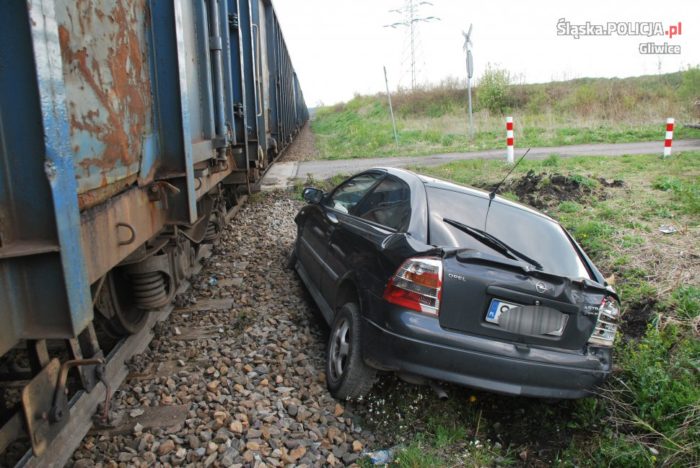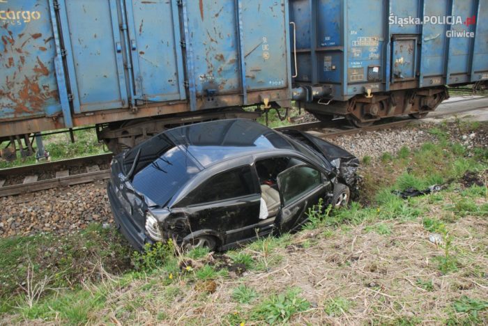 Do groźnego zdarzenia doszło 29 kwietnia na niestrzeżonym przejeździe przy ulicy Brzezina w Gierałtowicach. Kierujący samochodem osobowym 26 latek poruszajacy się wraz z dwójką pasażerów nie zastosował się do znaku STOP usytuowanego przed przejazdem kolejowym. Następstwem jego manewru była kolizja z jadącym pociągiem towarowym. W wyniku zdarzenia nie ucierpiał żaden uczestnik. Jak się okazało kierujacy osobówką nie posiadał uprawnień. Zarówno kierowca osobówki jak i motorniczy byli trzeźwi.