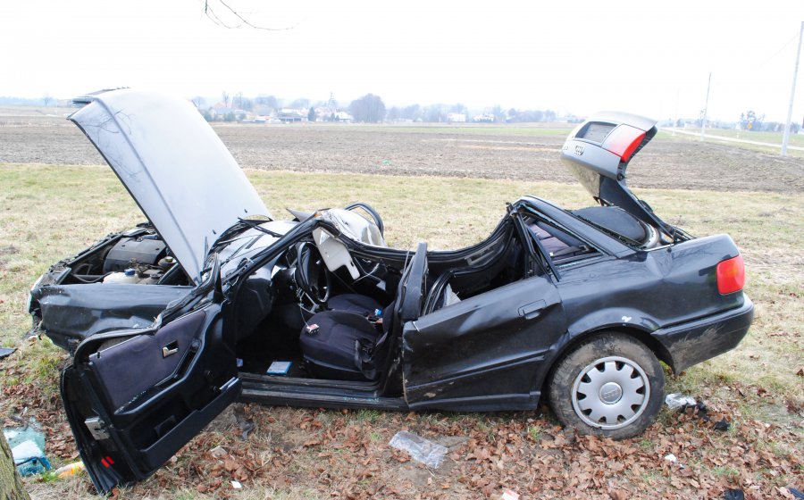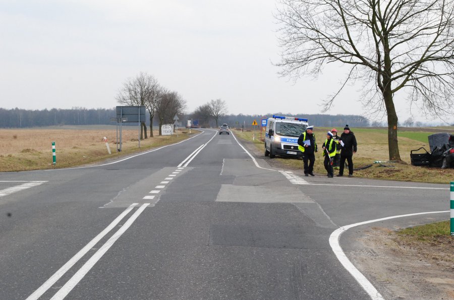 Kierujący audi 80 zjechał na pobocze i uderzył w drzewo. Na skutek doznanych obrażeń zginęła pasażerka.