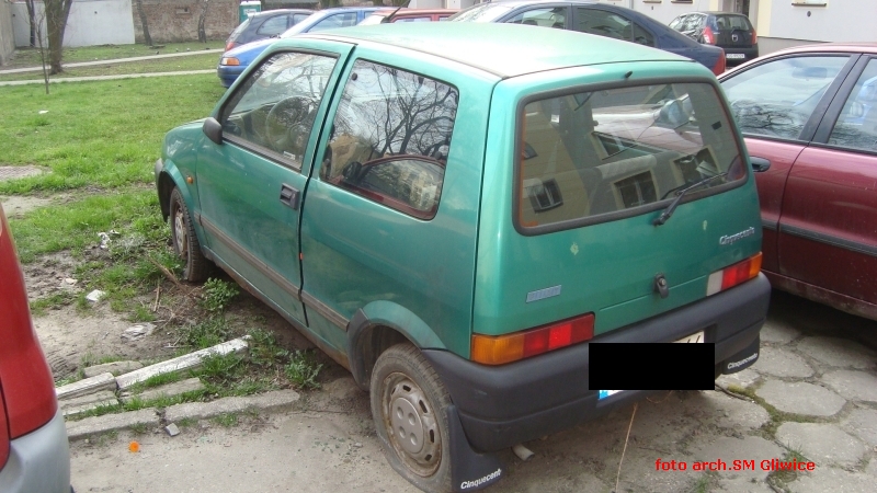 Dzielnicowy straży miejskiej otrzymał informację, że na jednym z podwórek przy ul. Nowy Świat stoi samochód, który nie należy do żadnego z lokatorów. Był to fiat cinquecento.