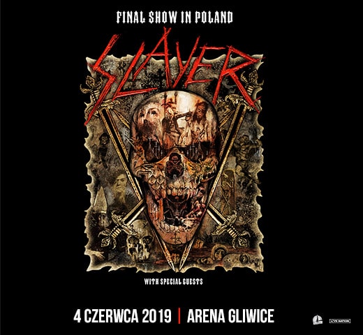 4 czerwca, polscy fani będą mogli zobaczyć Slayera na żywo podczas koncertu w ramach trasy World Final Tour w Arenie Gliwice.