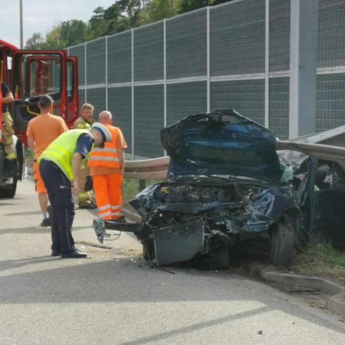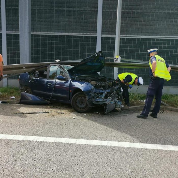 Kierujący renault uderzył w bariery energochłonne. Na miejscu lądował śmigłowiec LPR.