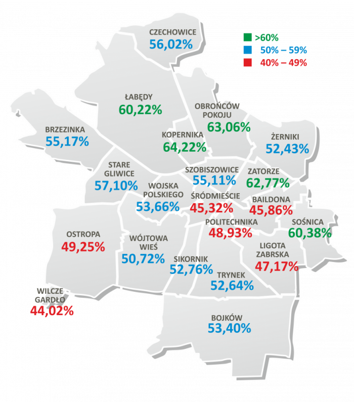 Według stanu na 31 sierpnia spisanych zostało 57,62% mieszkańców Gliwic, z których: