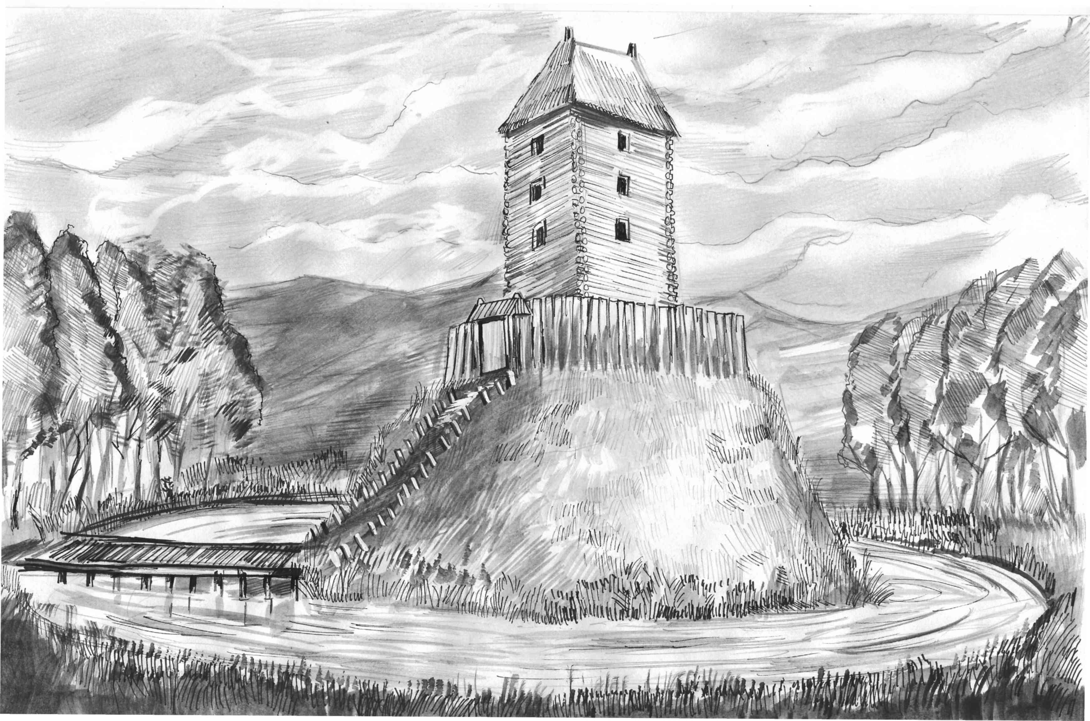 Rekonstrukcja wyglądu wieży rycerskiej rys. R. Polaczkiewicz