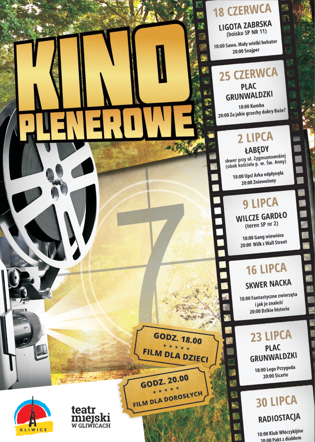 W każdą niedzielę do końca lipca Letnie Kino Plenerowe będzie odbywać się w innej dzielnicy. Pierwsze seanse zaplanowano na boisku SP nr 11 (ul. Pocztowa 31). Zobaczymy „Sawę. Małego wielkiego bohatera” i „Snajpera”. Warto przyjść trochę wcześniej i zarezerwować sobie miejsce na wygodnym leżaku, przygotowanym przez Miasto Gliwice. Następny seans (25 czerwca) odbędzie się na pl. Grunwaldzkim. Mali widzowie obejrzę „Kumbę”, a dorośli francuską komedię „Za jakie grzechy, dobry Boże?”.