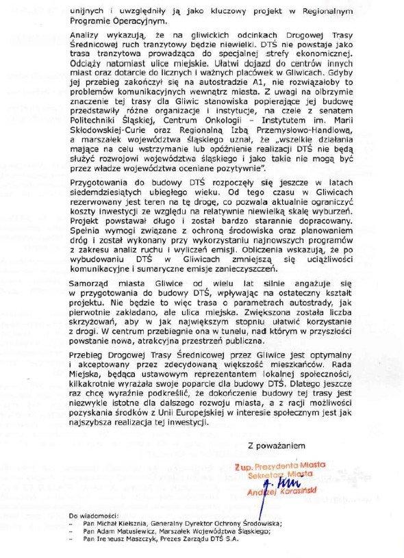 Na historyjki o zagrożeniach mogących powstać po wybudowaniu DTŚ, Regionalna Dyrekcja Ochrony Środowiska już dawno odpowiedziała 90-cio stronicowym dokumentem w którym to OBALIŁA WSZYSTKIE BAJECZKI ugrupowania antygliwickiego – Gliwiczanie Dla Gliwic.