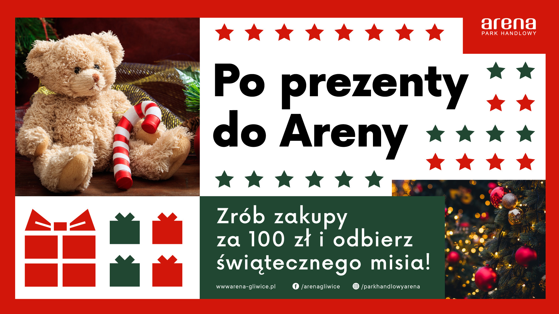 Święta zbliżają się szybkimi krokami, warto więc już teraz pomyśleć o prezentach dla najbliższych. Gdzie więc wybrać się po upominki? Do Parku Handlowego Arena Gliwice! Można tam znaleźć wiele pomysłów na prezent, a także otrzymać wyjątkowy upominek. Będzie nim pluszowy miś.
