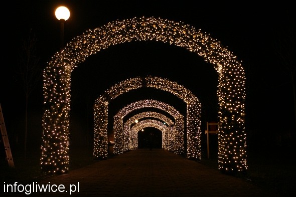 W tym roku Miejski Zarząd Usług Komunalnych przygotował kilka nowych, atrakcyjnych dekoracji. Z pewnością gliwiczanom spodoba się świetlny tunel, który pojawił się na Placu Grunwaldzkim. Wzdłuż głównej alei, biegnącej od ul. Zawiszy Czarnego, rozmieszczono 15 ozdobionych migającymi lampkami bram.