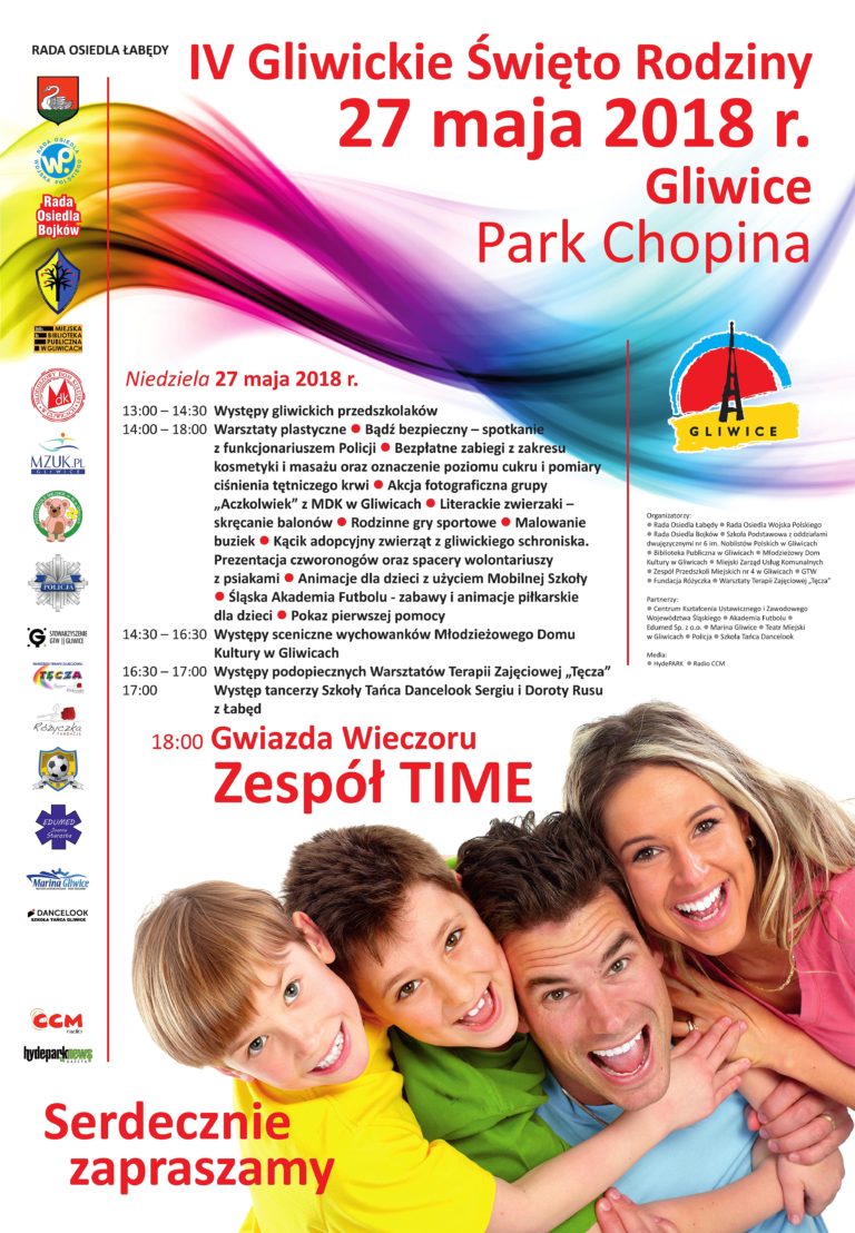 Czwarta edycja imprezy Gliwickie Święto Rodziny, organizowana w Parku Chopina odbędzie się w następną niedzielę, 27 maja. W godzinach 13.00-19.00 zaplanowano między innymi występy przedszkolaków, warsztaty plastyczne, występy podopiecznych Młodzieżowego Domu Kultury oraz Warsztatów Terapii Zajęciowej “Tęcza”. Najmłodsi uczestnicy wydarzenia zapewne ucieszą się z obecności animatorów, który poprzez zabawę będą umilać czas spędzony w parku.