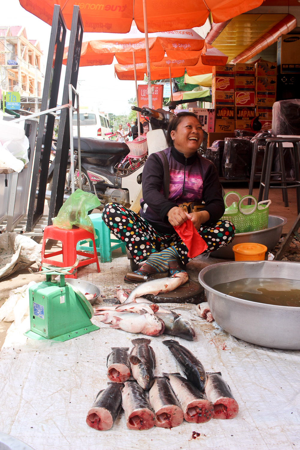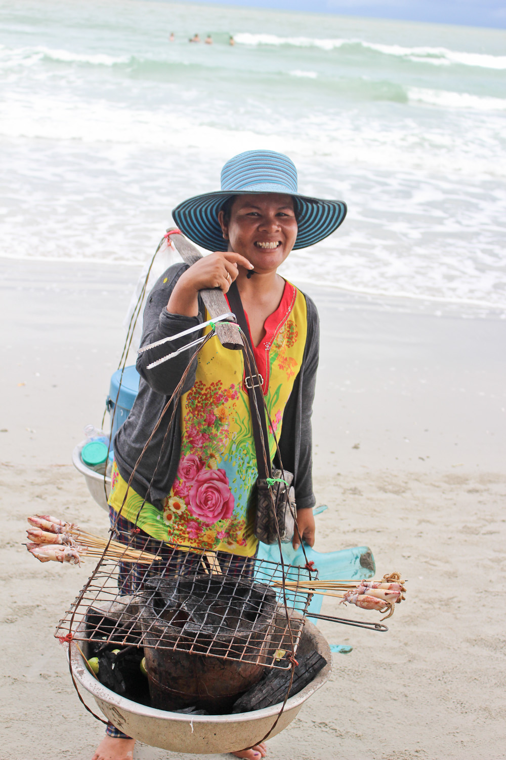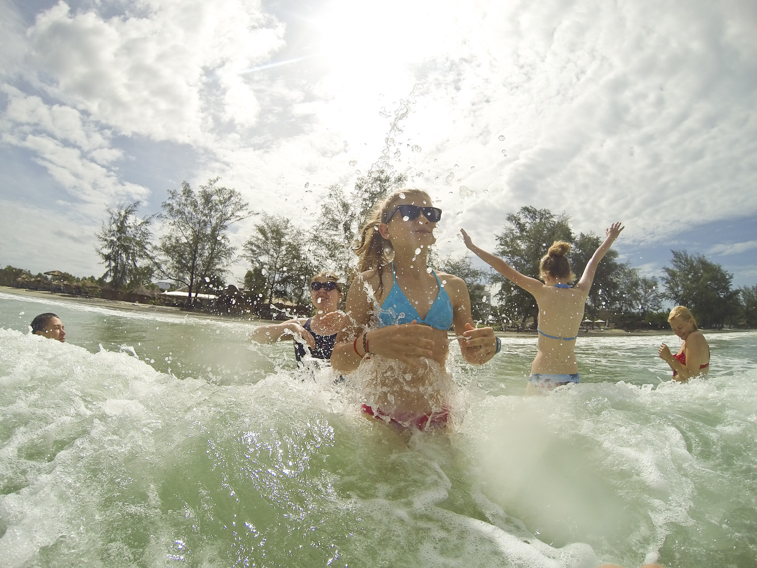 Oprócz tego spotkaliśmy się z próbą wymuszenia na nas łapówki przez urzędników celnych, jednak zdołaliśmy odkręcić sprawę i nie płacić im dodatkowych pieniędzy. Naszym kolejnym przystankiem było Siem Reap, gdzie po raz pierwszy mieliśmy okazję spróbować lokalnej kuchni, która posmakowała nam tak bardzo, że objadaliśmy się ryżem z warzywami do końca wyprawy. Odwiedziliśmy również targ, szkoły, gdzie spotkaliśmy niesamowitych ludzi i byliśmy nimi zafascynowani, obserwowaliśmy trening khmerskiego boksu (pamiętać! nigdy nie podpaść bokserom!) oraz widzieliśmy małą wytwórnie produktów z ratanu i mieliśmy okazję przekonać się na własnej skórze jak trudne jest zrobienie zwykłego koszyka. Jedną z najbardziej zachwycających rzeczy był Angkor, największy na świecie kompleks świątyń wpisanych na listę UNESCO. Zrobiło to na nas piorunujące wrażenie. Wszystkie świątynie były inne, każda miała coś, co nas zachwycało. Świątynia Bayon, słynąca z 216 twarzy, które śledziły nasze ruchy, a ponadto świetnie bawiliśmy się badając jej niższy poziom. Świątynia Ta Prohm, gdzie nagrywano Tomb Ridera, a Angelina Jolie wcieliła się w słynną Larę Croft i faktycznie czuliśmy się tam jak na planie filmowym, gdyż każdy zwiedzający miał aparat lub kamerę. Widok ze szczytu wieży w świątyni Ta Keo zwalił nas dosłownie z nóg. Słynie ona z 50 metrowej wieży, a schody są wręcz pionowe, jednak nie zrażeni wysokością wspięliśmy się i nie żałowaliśmy… dopóki nie przyszedł czas na schodzenie… Po całym następnym dniu spędzonym w autobusie znaleźliśmy się w Kratie, gdzie mieliśmy okazję uczestniczyć w niezwykle interesującym wykładzie organizacji WWF oraz, co najważniejsze, zdobyliśmy główny cel naszej ekspedycji, czyli obserwacja krótkogłowych delfinów rzecznych w Mekongu i pomoc w ich ochronie. Z samego rana zerwaliśmy się z łóżek, aby wyruszyć z miejscowymi w miejsce, gdzie jest największa szansa, aby je zobaczyć. Udało nam się to, pomimo długiego braku odzewu ze strony delfinów ale w końcu zaczęły wypływać na powierzchnię. Jest to zagrożony gatunek, liczący ok. 80 osobników. Szkodliwa działalność człowieka, brudna rzeka i nielegalne połowy stawiają pod znakiem zapytania przetrwanie tych ssaków. Zebraliśmy dużo informacji na temat, jak możemy im pomóc, dlaczego tak wygląda ich sytuacja, w jakich warunkach są zmuszone żyć, itd. i planujemy stworzyć informator na ich temat, aby każdy mógł wziąć czynny udział w ich ratowaniu. Następnie udaliśmy się w podróż do stolicy Kambodży – Phnom Penh. Pierwszym, co zauważyliśmy był ogromny ruch na ulicach, hałas panujący dosłownie wszędzie oraz duże zanieczyszczenie powietrza. Jednak nie były to argumenty, aby nie iść zwiedzać stolicy! Już następnego dnia mogliśmy się pochwalić, że widzieliśmy stadion i wioskę olimpijską, które robiły spore wrażenie oraz Muzeum Ludobójstwa Tuol Sleng (potocznie nazywane więzieniem S-21, dawne liceum). Wgłębiliśmy się tam w krwawą historię kraju i okrutne rządy panowania Czerwonych Khmerów. Mnóstwo sal było wyposażonych jedynie w metalowe prycze, do których przykuwano człowieka i torturowano prądem. Widzieliśmy murowane i drewniane cele, gdzie trzymano więźniów, ich zdjęcia, czaszki i poznaliśmy ich historie, zapisane w formie wywiadów na stojakach, gdzie dowiedzieliśmy się jak traktowano kobiety i zmuszano je do małżeństw. W całym budynku odczuwało się smutek, który bił z każdego pomieszczenia, jakby ciężar przewinień i okrucieństw tam popełnionych nigdy miał nie opuścić tych ścian. Była to najsmutniejsza wycieczka całej ekspedycji, ale również jedna z najbardziej zapadających w pamięci. Dzień zakończyliśmy jednak radosnym akcentem, czyli przepyszną kolacją w indyjskiej knajpce, którą prowadził rodowity hindus wraz ze swoją żoną khmerką. Mieliśmy okazję poznać ich dzieci, które przyniosły swoje szkolne podręczniki i uczyły nas tamtejszego pisma, a my odwdzięczyliśmy się im tym samym. Kolejnym przystankiem na naszej drodze był Kampot, który słynie z upraw plantacji pieprzu. Dostaliśmy się tam za pomocą tuk-tuków, czyli motorów do których dobudowano budkę na kołach z miejscami siedzącymi. Dowiedzieliśmy się tam mnóstwa ciekawych informacji na temat tego jak rośnie pieprz, jakie są jego rodzaje i pory zbiorów, itp. Byliśmy zachwyceni uprawami, które zajmowały ogromne tereny, ale najbardziej oczarował nas przepiękny górski krajobraz rozciągający się dookoła. Czyste powietrze i niesamowite widoki oraz wszechogarniająca cisza i spokój sprawiały, że nie chcieliśmy opuszczać tego miejsca. Po kolejnej podróży minivanem spełnieniem marzeń było dla nas mieszkanie w rajskich słomiano-drewnianych chatkach położonych na plaży w Otres Beach. Miały one swój jedyny i niepowtarzalny klimat i mieszkanie tam było prawdziwym spełnieniem dziecięcych marzeń. Przyszedł czas na chwile odpoczynku i zasypianie przy szumie fal, każdej nocy. Jak przez całą ekspedycję, pora deszczowa dawała nam się we znaki, gdyż przez większość naszego pobytu niebo było zakryte chmurami, jednak każdego ranka udawało nam się złapać promienie słońca i od razu po przebudzeniu wbiegaliśmy do wody, skacząc przez fale tak długo, dopóki na niebie nie pojawiły się deszczowe chmury. Wisienką na torcie było dla nas picie przepysznych koktajli kokosowych podczas opalania. Niestety, z bólem serca pożegnaliśmy się z naszą rajską plażą, by znów wyruszyć do Bangkoku, gdzie mieliśmy czas na zwiedzanie stolicy Tajlandii. Odwiedziliśmy świątynie i zakosztowaliśmy lokalnej kuchni, mieliśmy też czas na zakup ostatnich pamiątek. Po tych wszystkich niesamowitych przygodach czekała nas długa podróż powrotna, ale wszyscy wracaliśmy do domów szczę