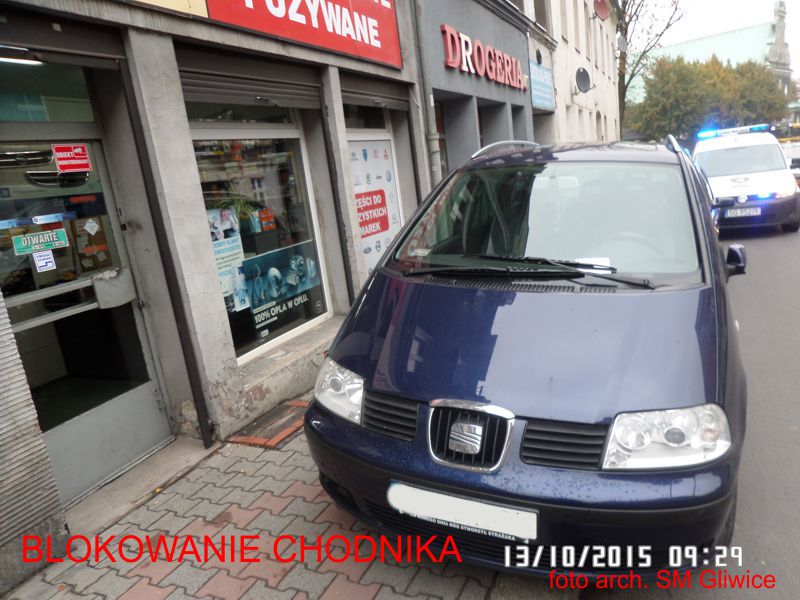 – Blokując chodnik,
