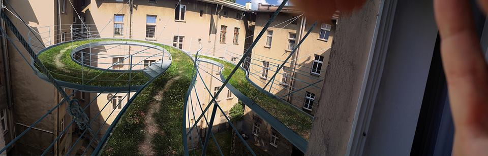 – Pierwsza myśl jaka nam wtedy przychodzi do głowy: „gdyby tylko można było wyjść na spacer”. Tak właśnie zrodził się pomysł na balkon zawieszony w powietrzu. To także jeden z pomysłów na zmianę smutnego podwórka – studni, na które codziennie patrzymy z okien na 3 piętrze, na nadanie mu nieco magii – mówią.