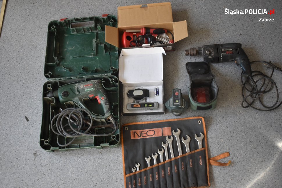 W trakcie przeszukania pomieszczeń należących do jednego z podejrzanych w tej sprawie policjanci ujawnili szereg przedmiotów, które prawdopodobnie pochodzą z włamań i kradzieży, na terenie Zabrza i miast sąsiadujących. Do przestępstw dochodziło nie później, niż w grudniu 2019 roku.
