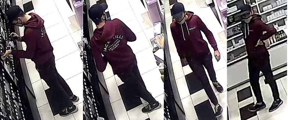 Nieznany sprawca zarejestrowany przez monitoring sklepowy zarejestrował kradzież perfum o łącznej wartości 830 zł. Niestety, śledczym nie udało się rozpoznać mężczyzny ze zdjęć.