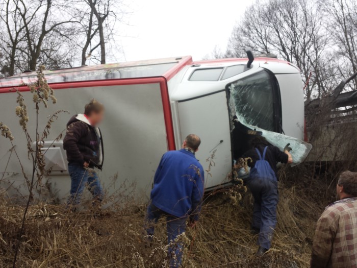 – Pojazd dostawczy wjechał w barierki na moście nad rzeką Bytomką, a następnie dachował. Kobieta która prowadziła pojazd nie doznawała większych obrażeń – wyszła z pojazdu o własnych siłach, jednakże pogotowie zabrało ją do szpitala. Kierowca TIRa oddalił się – relacjonuje w e-mailu do naszej redakcji pan Grzegorz.