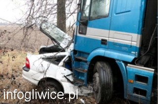 Tir zmiażdżył opla. Droga z Gliwic do Knurowa całkowicie zablokowana