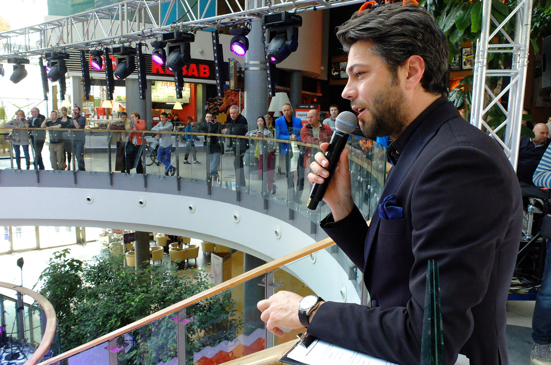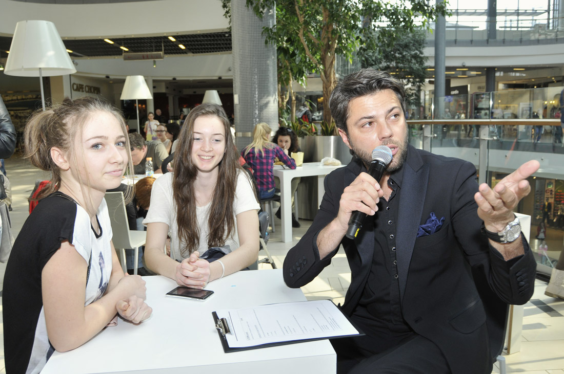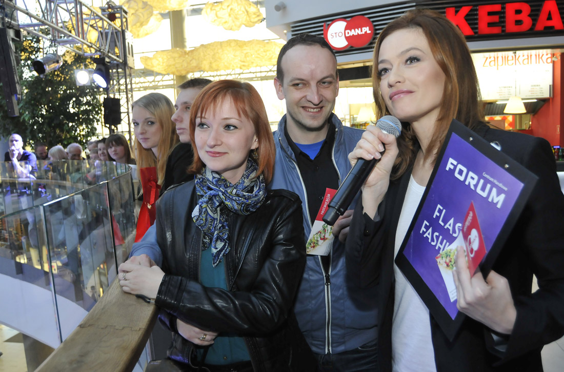 Zdjęcie można było sobie zrobić z Magdaleną Różczką – aktualną ambasadorką centrum, a także Małgosią Sochą – która pełniła tę rolę do niedawna. Razem pojawiły się one na scenie, z jak zawsze perfekcyjnie prezentującym się Olivierem Janiakiem, by poprowadzić pokazy mody wiosenno-letnich kolekcji.