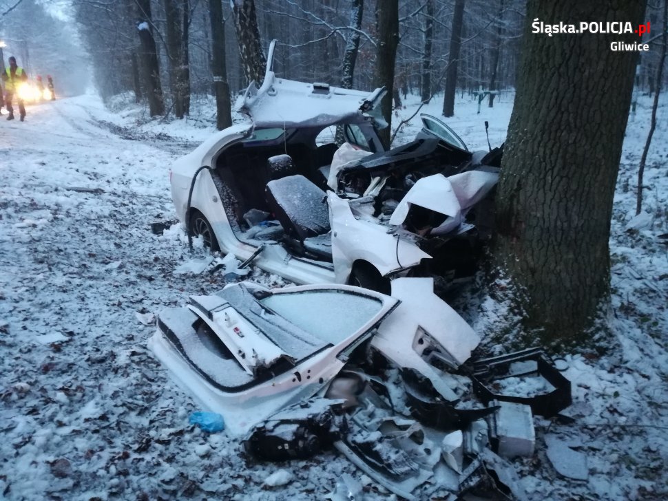 Tragiczny wypadek w powiecie gliwickim. Auto rozbiło się na drzewie