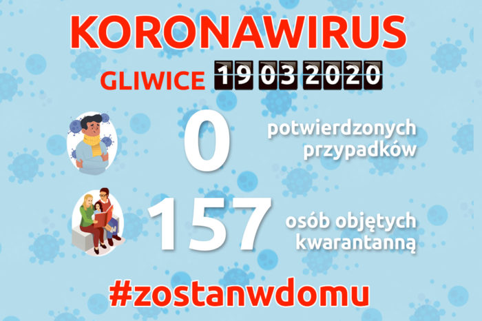 Na terenie Gliwic kwarantannie poddano 157 osób. (stan z 19.03, godz. 12.00). Nie mamy potwierdzonych przypadków osób zarażonych.