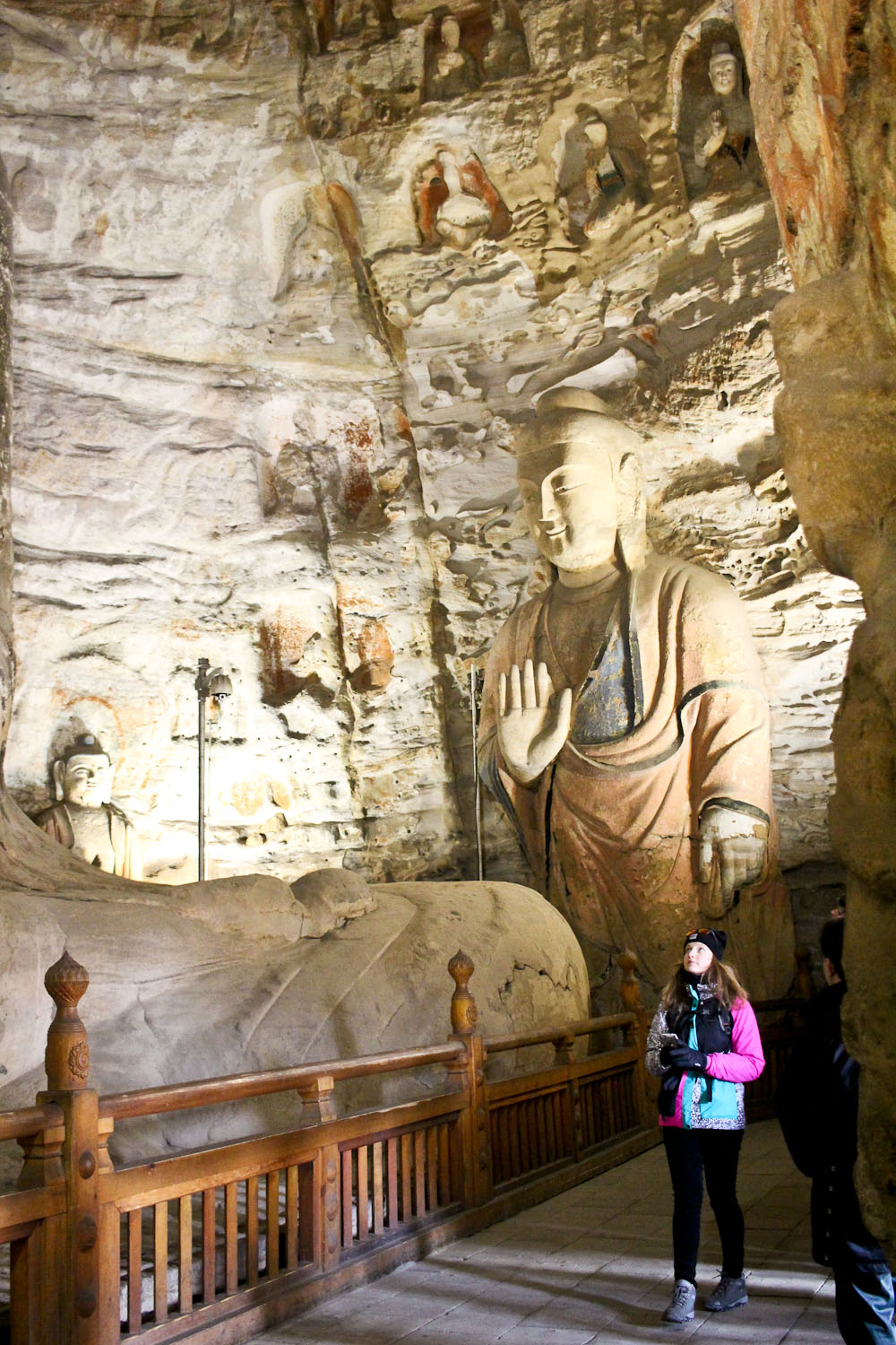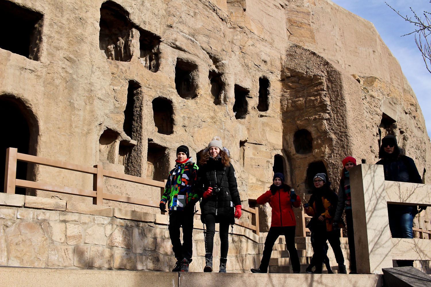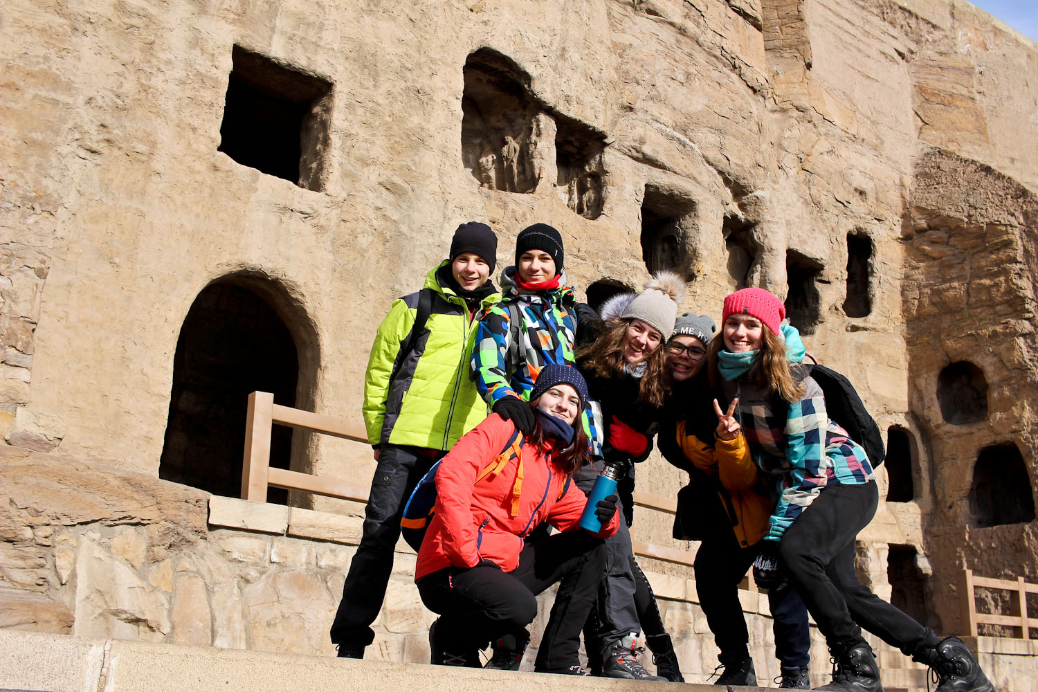 W Datong w pierwszej kolejności zwiedziliśmy Groty Yungang. Były przepiękne i niektóre posągi były bardzo wysokie. Kilka rzeźb przykuwało naszą uwagę, ponieważ ich twarze się rozsypywały. Dowiedzieliśmy się, że to przez zanieczyszczone powietrze, lecz pomimo wszystko miało to swoją historię i swój urok. Drogę powrotną do hostelu pokonaliśmy także przez mur obronny starego miasta. Widoki były cudowne i pomiędzy wieżowcami oraz innymi wysokimi budynkami widzieliśmy także typowo chińskie budowle. Na murze znajdowały się różne figury z bajek, które ludzie rozstawiali na Chiński Nowy Rok. Przez następne dni zwiedzaliśmy Datong i spróbowaliśmy nowych potraw. Niedaleko naszego hostelu stały małe pojazdy. Przy jednym z nich pani zrobiła nam do jedzenia coś, co wyglądało bardzo podobnie do tortilli. Ciasto rozprowadziła po okrągłej, gorącej płycie, a następnie rozbiła jajko i dodała sałatę oraz ostre przyprawy.