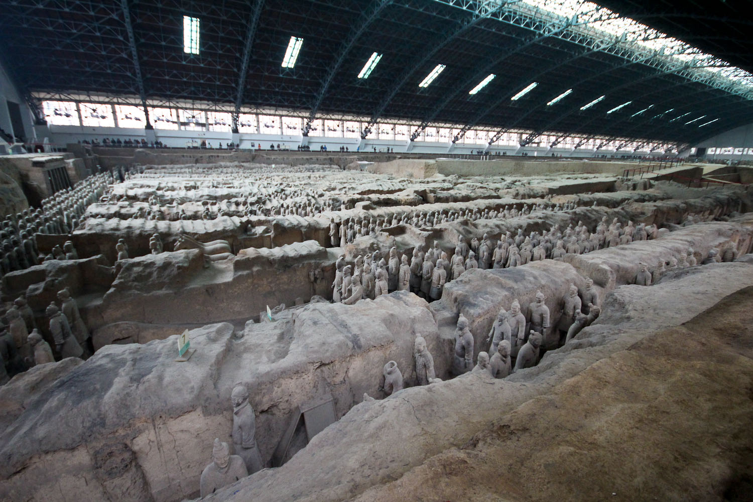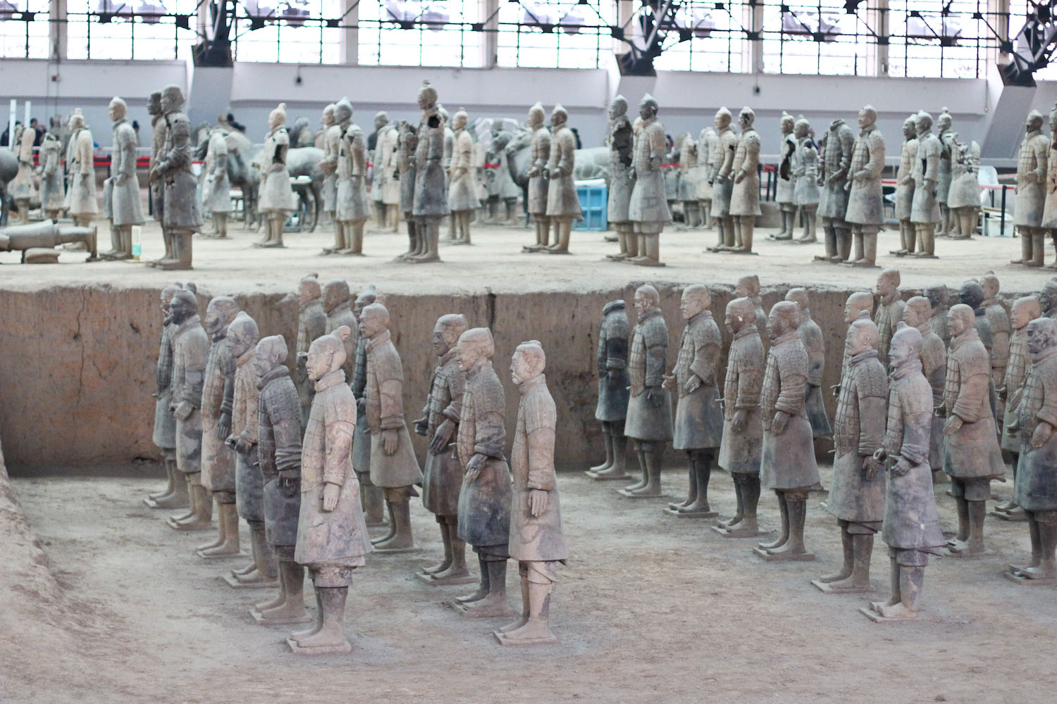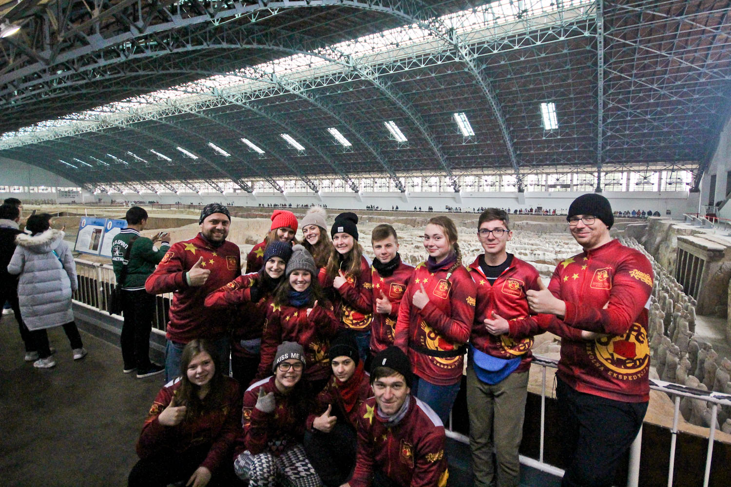 Dwa dni później wybraliśmy się dalej, czyli do Xi’an. Jedną z największych atrakcji turystycznych w Chinach jest Terakotowa Armia, która znajduje się w okolicach miasta. W pierwszej krypcie znajduje się około 6000 posągów żołnierzy i koni naturalnych rozmiarów, lecz wszystkich rzeźb jest około 8000. Armia została przypadkowo znaleziona w 1974r. przez trzech chłopów kopiących studnię. Każda figura ma inny wyraz twarzy, by określić, że ludzie nie są tacy sami. Posągi odwrócone są plecami do grobu pierwszego cesarza chińskiego Qin Shi Huangdi, by go chronić. Niektóre z nich uległy zniszczeniu, dlatego znalezione przez archeologów szczątki są sklejane znów w całość. W ostatni dzień w Xi’an przeszliśmy się przez dzielnice muzułmańskie obok meczetu. Znajdowały się tam nie tylko stragany z pamiątkami, lecz także z regionalnymi potrawami. Niestety musieliśmy odmawiać ludziom, którzy zachęcali nas do zakupu, z powodu braku czasu. Gdy wróciliśmy do hotelu Jano’s spakowaliśmy plecaki.