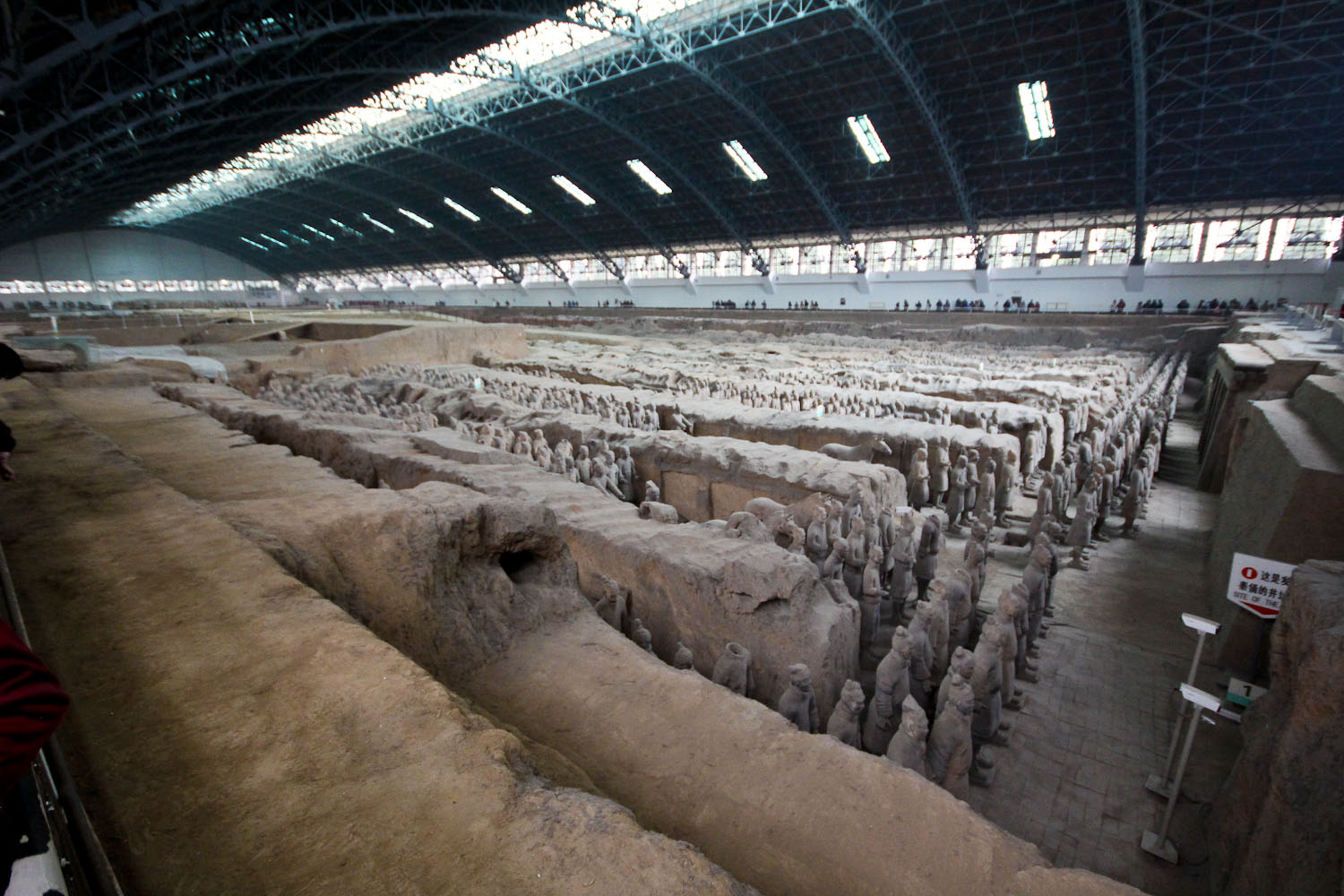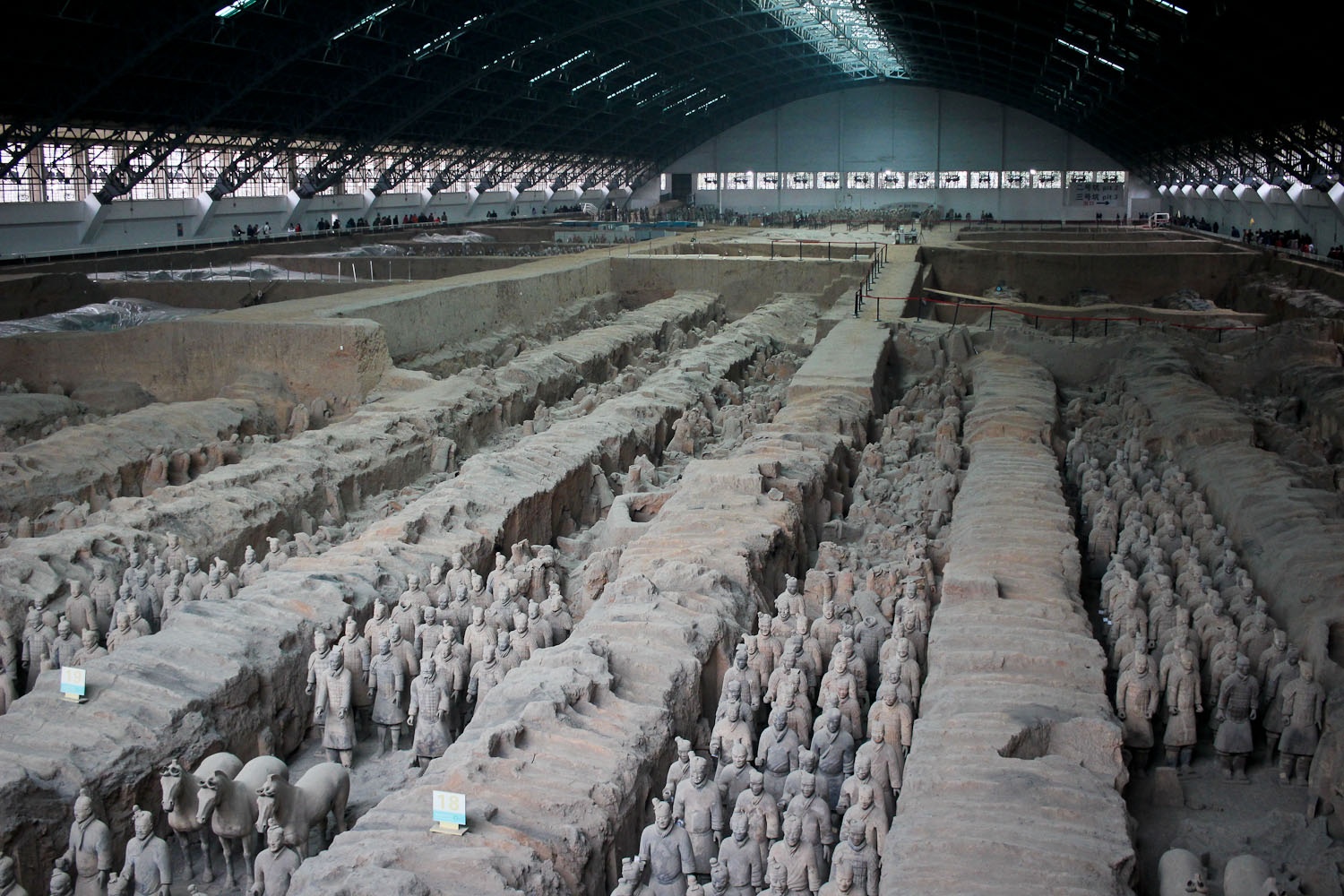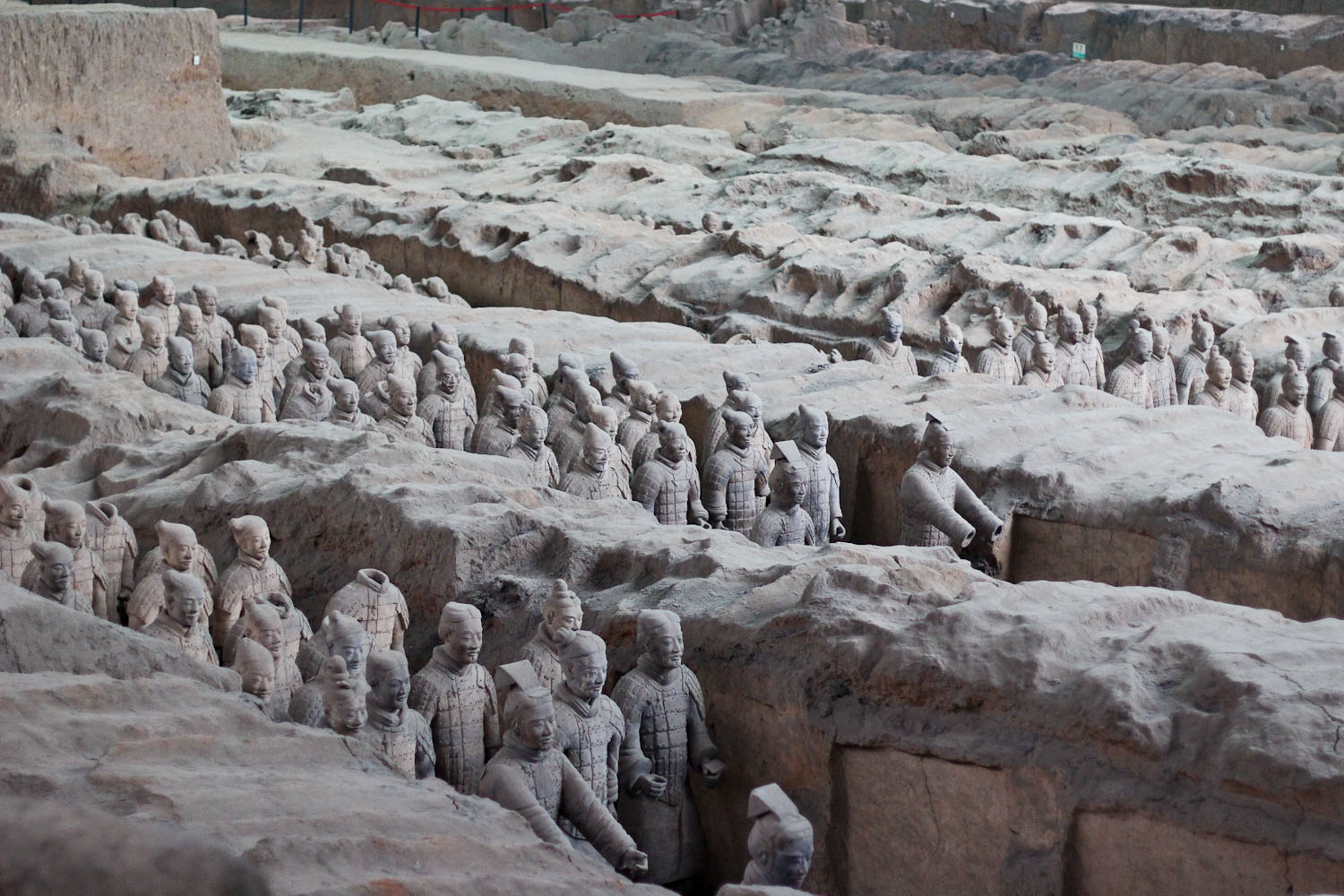 Dwa dni później wybraliśmy się dalej, czyli do Xi’an. Jedną z największych atrakcji turystycznych w Chinach jest Terakotowa Armia, która znajduje się w okolicach miasta. W pierwszej krypcie znajduje się około 6000 posągów żołnierzy i koni naturalnych rozmiarów, lecz wszystkich rzeźb jest około 8000. Armia została przypadkowo znaleziona w 1974r. przez trzech chłopów kopiących studnię. Każda figura ma inny wyraz twarzy, by określić, że ludzie nie są tacy sami. Posągi odwrócone są plecami do grobu pierwszego cesarza chińskiego Qin Shi Huangdi, by go chronić. Niektóre z nich uległy zniszczeniu, dlatego znalezione przez archeologów szczątki są sklejane znów w całość. W ostatni dzień w Xi’an przeszliśmy się przez dzielnice muzułmańskie obok meczetu. Znajdowały się tam nie tylko stragany z pamiątkami, lecz także z regionalnymi potrawami. Niestety musieliśmy odmawiać ludziom, którzy zachęcali nas do zakupu, z powodu braku czasu. Gdy wróciliśmy do hotelu Jano’s spakowaliśmy plecaki.