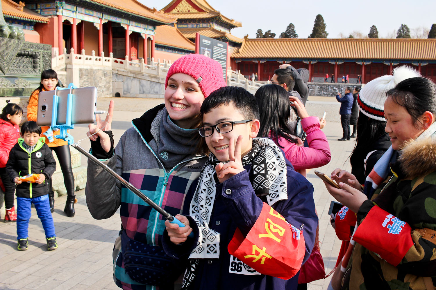 No i wreszcie… Pekin! Po kolejnej podróży w pociągu pierwszy dzień przespaliśmy. Następnego dnia nasza wycieczka rozpoczęła się na Placu Tiananmen. W pierwszej kolejności weszliśmy do mauzoleum, gdzie w trumnie leżał Mao Zetong. Dla niektórych nie był to pewnie przyjemny widok. Później ruszyliśmy w kierunku Zakazanego Miasta, które leży w centrum Pekinu i zostało wpisany na listę światowego dziedzictwa UNESCO w 1987r. Był to dawny pałac cesarski dynastii Ming i Qing. Każdy budynek wyglądał prawie tak samo, jednak różniły się od siebie w tajemniczy sposób. Zakazane Miasto zobaczyliśmy nie tylko przekraczając piękne, ozdobione bramy, ale również z góry wchodząc na wzniesienie. Było większe niż nam się wydawało. Widoki nas zafascynowały i oczarowały.