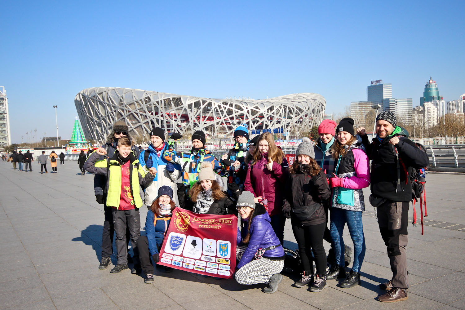 Dzień później pojechaliśmy na stadion „Ptasie Gniazdo”, gdzie odbyły się Igrzyska Olimpijskie w 2008r. Siedzieliśmy na widowni, patrząc jak ludzie korzystają z atrakcji zimowych takich jak lodowisko albo górka wykonana ze sztucznego śniegu, z której dzieci radośnie zjeżdżały. Kilka osób z grupy poszło na samą górę widowni, gdzie wysokość i przede wszystkim wielkość stadionu budziła zachwyt i pełen podziw. W drodze do metra przechodziliśmy jeszcze obok basenu, który wyglądał jakby ktoś dokleił do budynku bańki mydlane.